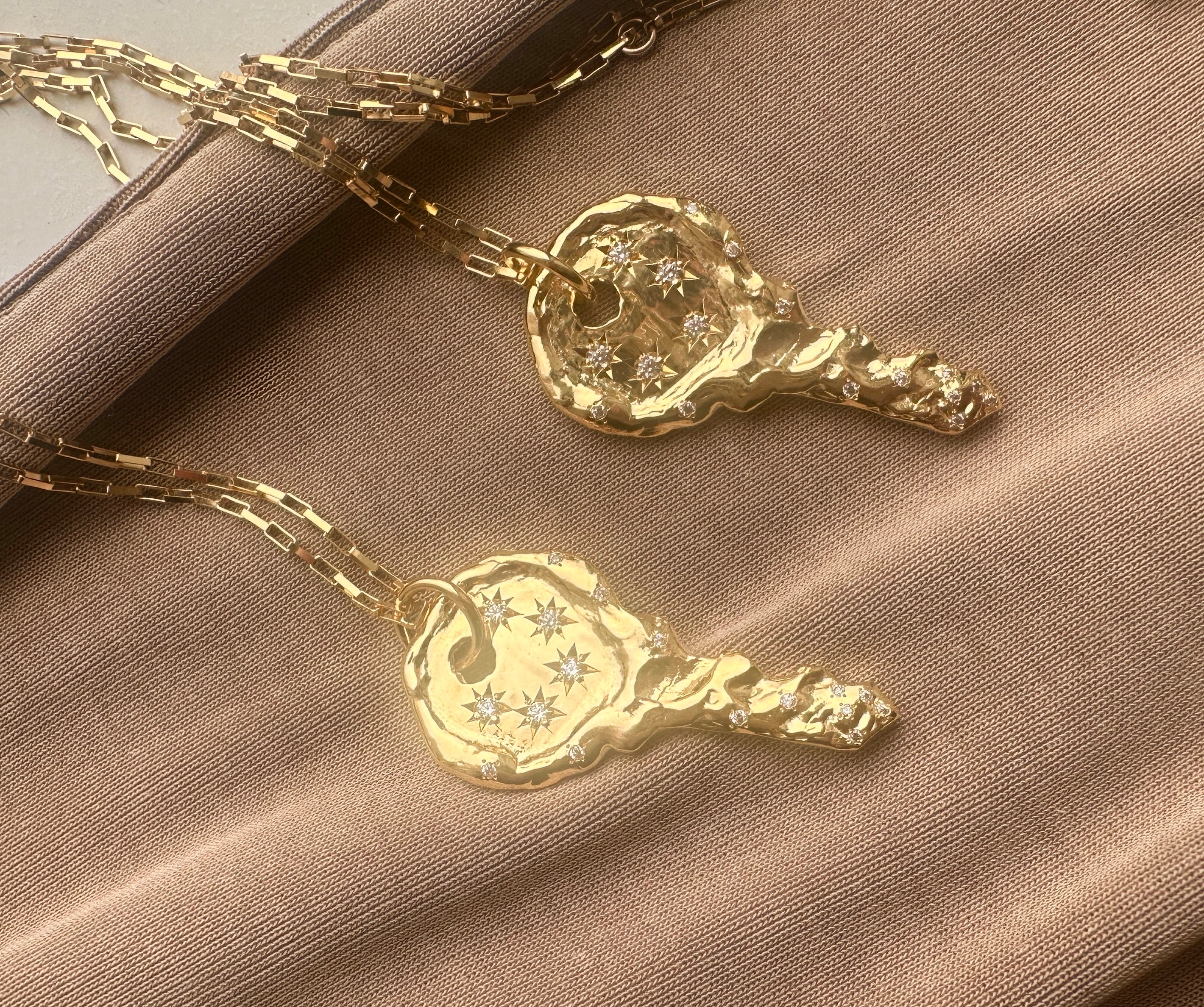 We make all of our designs in-house at our studio. Using one of the traditional metalsmithing techniques, lost-wax casting, combined with digital modeling, all of our pieces are finished by hand.